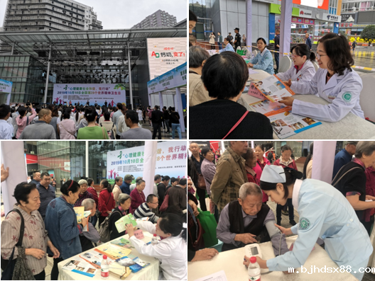 10月10日,市十三院在全国第28个世界精神卫生日,组织了4名医护人员、10名志愿者,在杨家坪步行街开展“心理健康社会和谐,我行动”2019年世界精神卫生日科普宣传活动:一是提供现场义诊和健康咨询;二是宣传精神卫生防治相关知识,答疑释惑;三是针对部分患者患病情况,我院精神科医生给予了合理的个性化解决方案。向老年朋友们宣传精神疾病、睡眠障碍等知识,此次活动惠及居民100余人,发放健康资料300余份。
