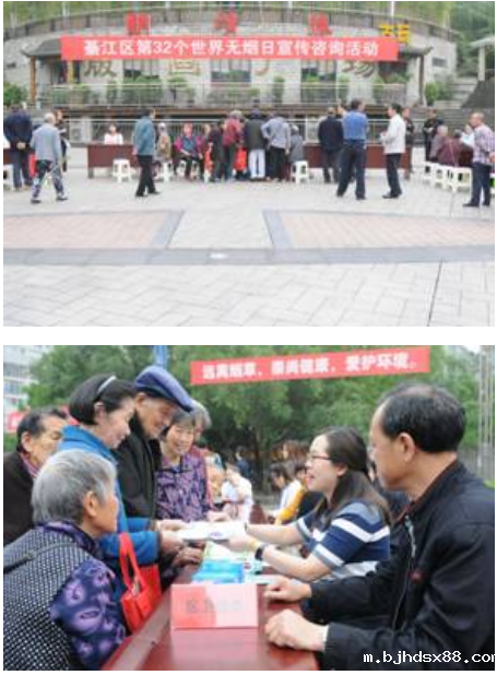 四是科普知识传播。在区电视台、49个邮政便民服务网点、26个医疗卫生机构滚动播放《你的权力,我的责任》控烟公益广告,利用“健康綦江”微信公众号、綦江日报推送控烟核心信息。