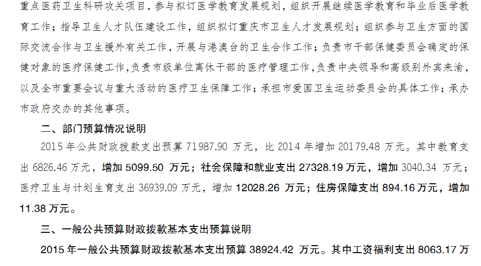 重庆市卫生和计划生育委员会(原重庆市卫生局)2015年部门预算情况说明