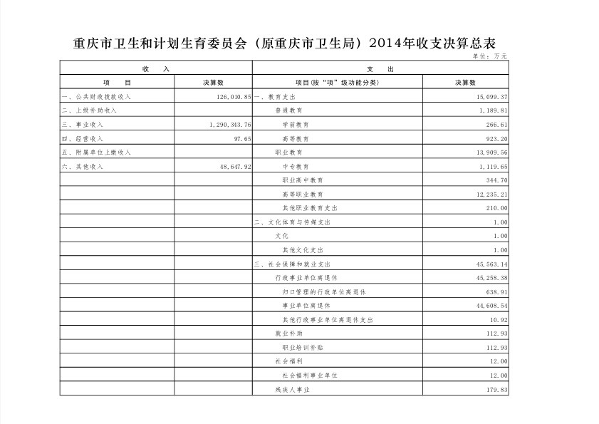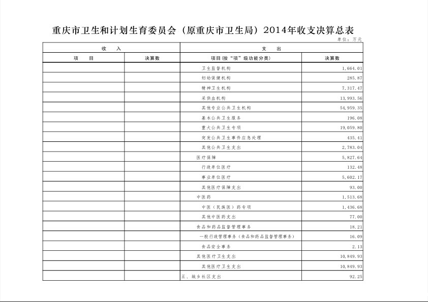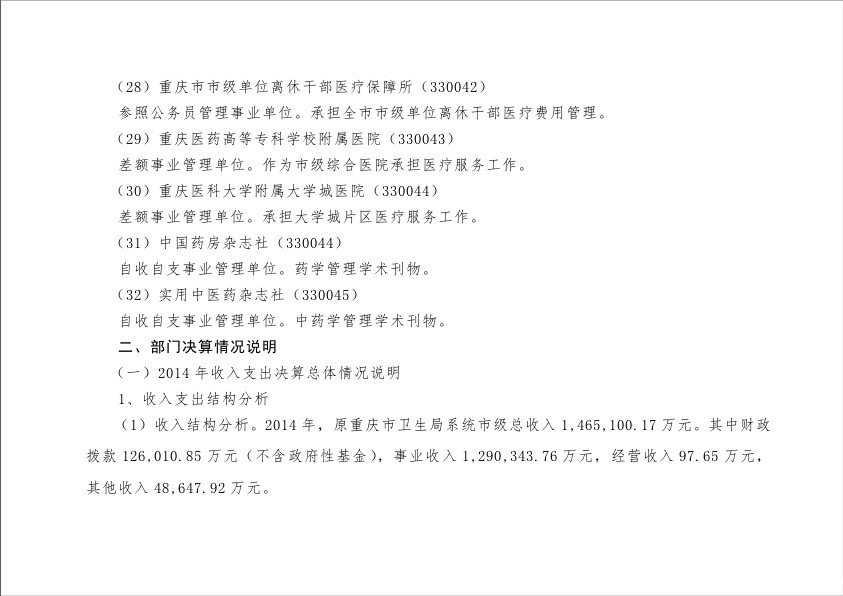 重庆市卫生和计划生育委员会(原重庆市卫生局)2014年部门决算情况说明