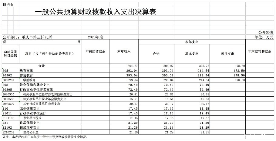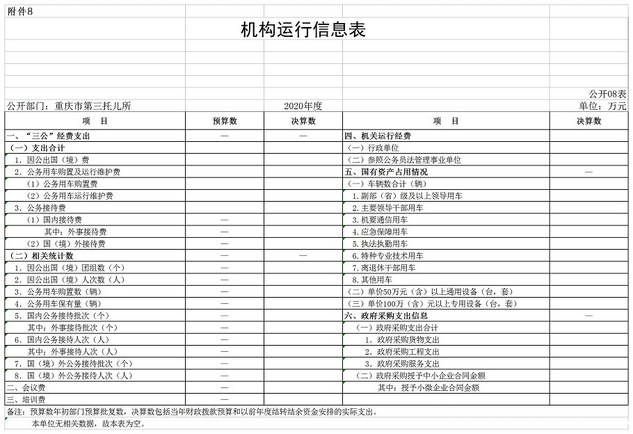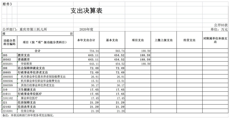 重庆市第三托儿所2020年度部门决算情况说明