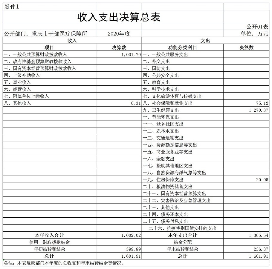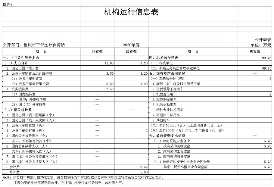 重庆市干部医疗保障所2020年度部门决算情况说明