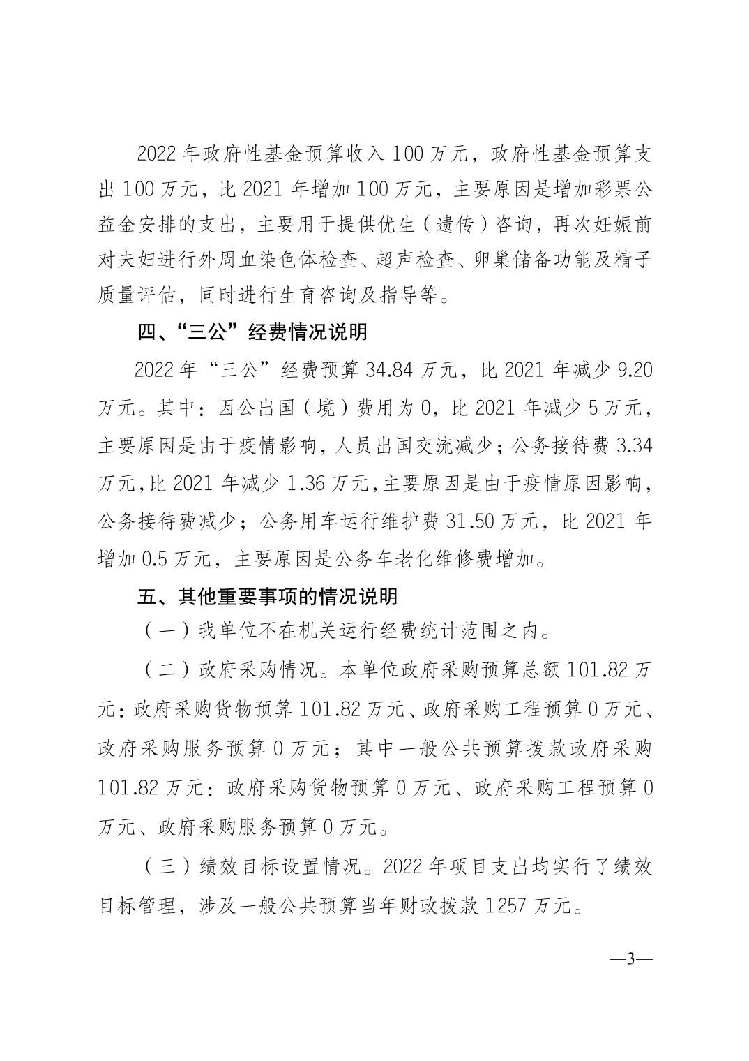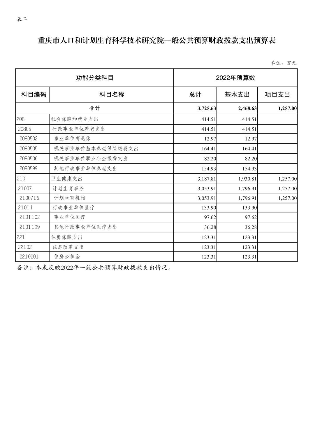 重庆市人口和计划生育科学技术研究院2022年单位预算情况说明