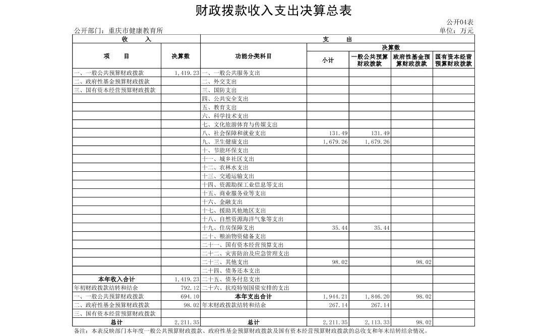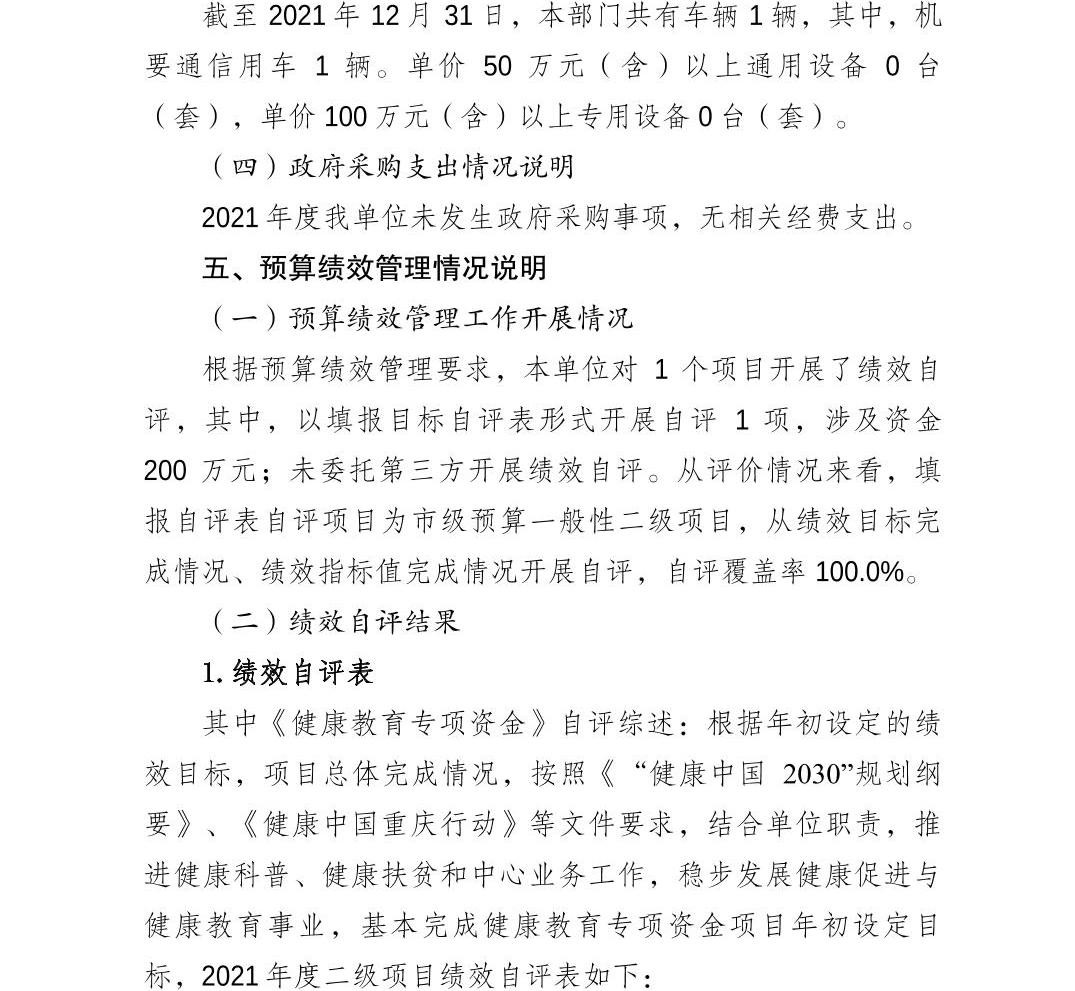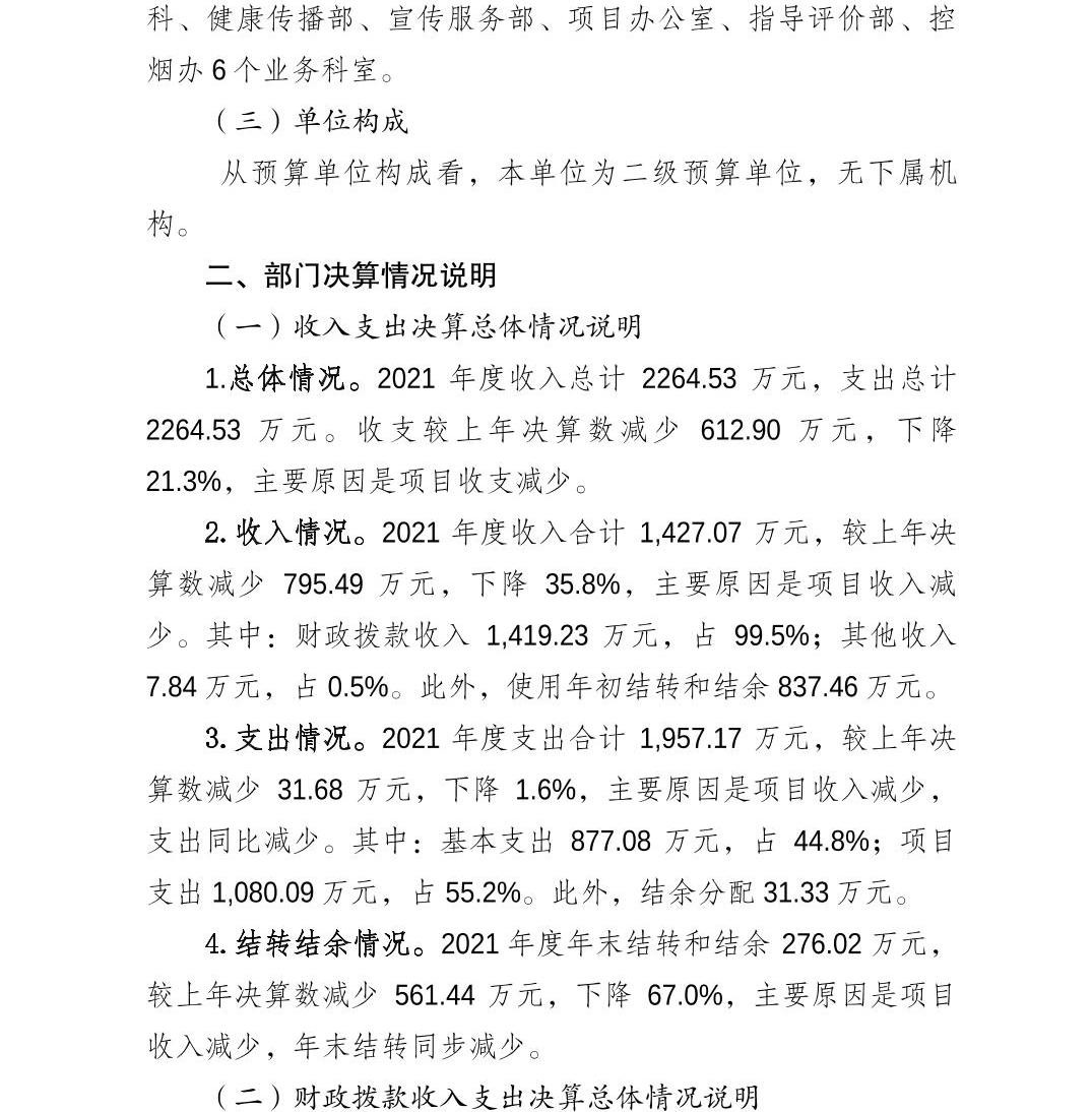 重庆市健康教育所2021年度部门决算情况说明
