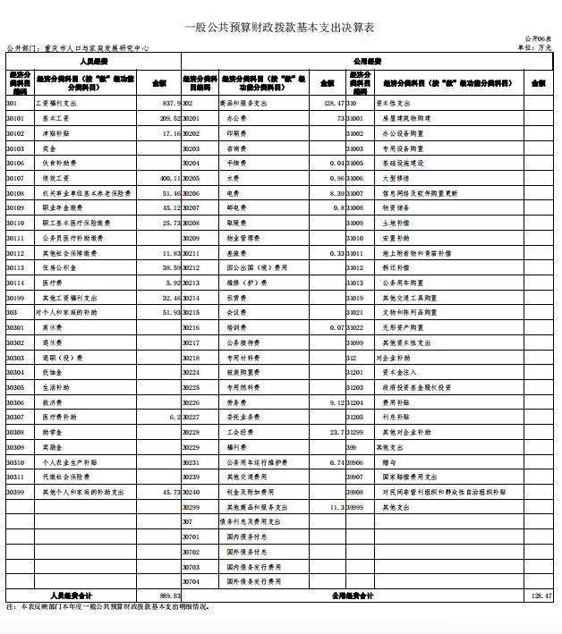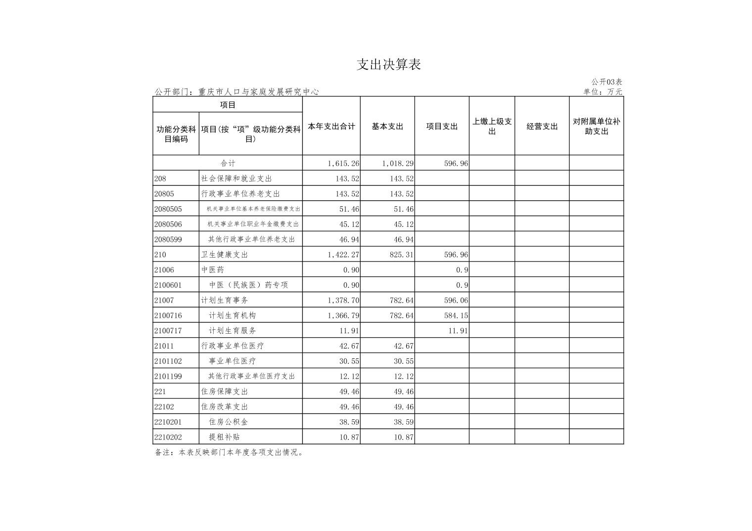 重庆市人口与家庭发展研究中心2021年度部门决算情况说明
