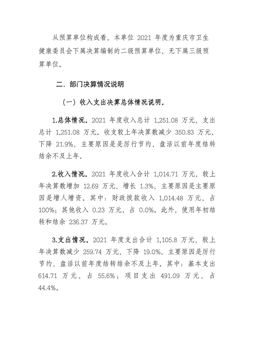 重庆市干部医疗保障所2021年度部门决算情况说明