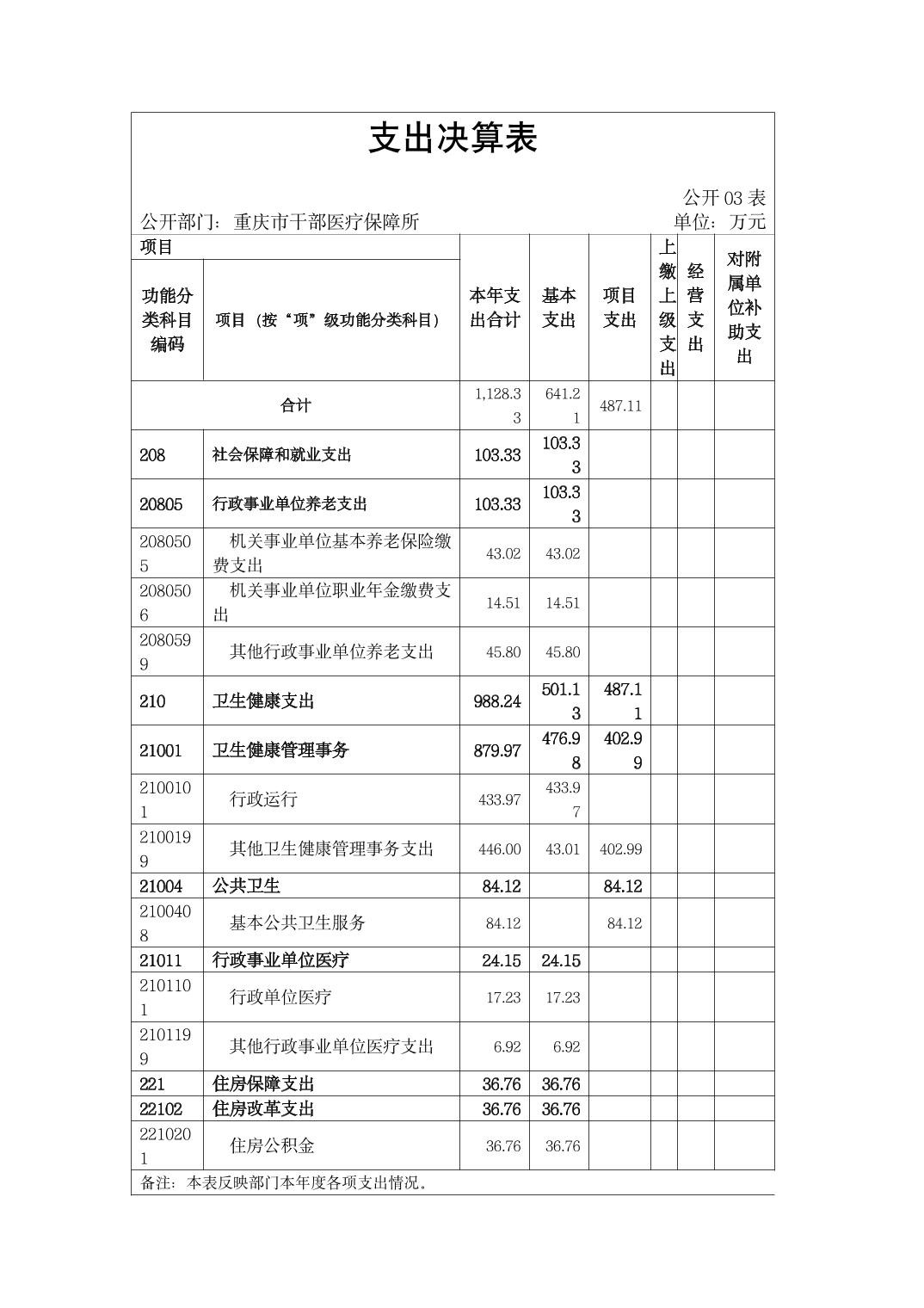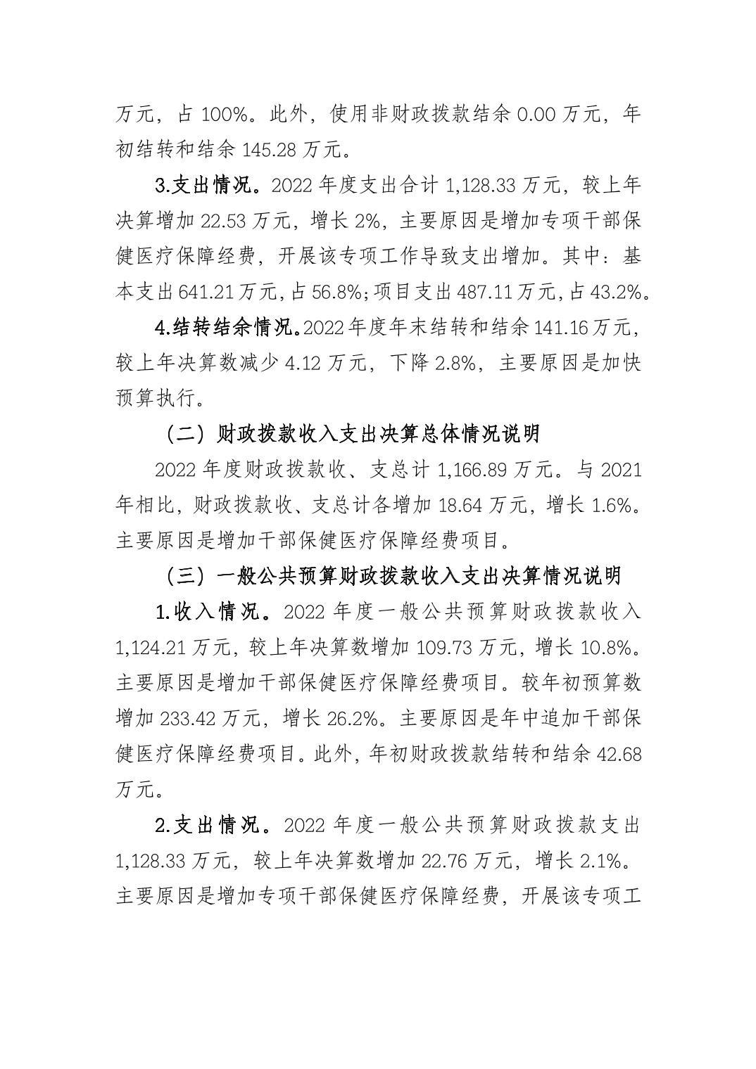 重庆市干部医疗保障所2022年度部门决算情况说明
