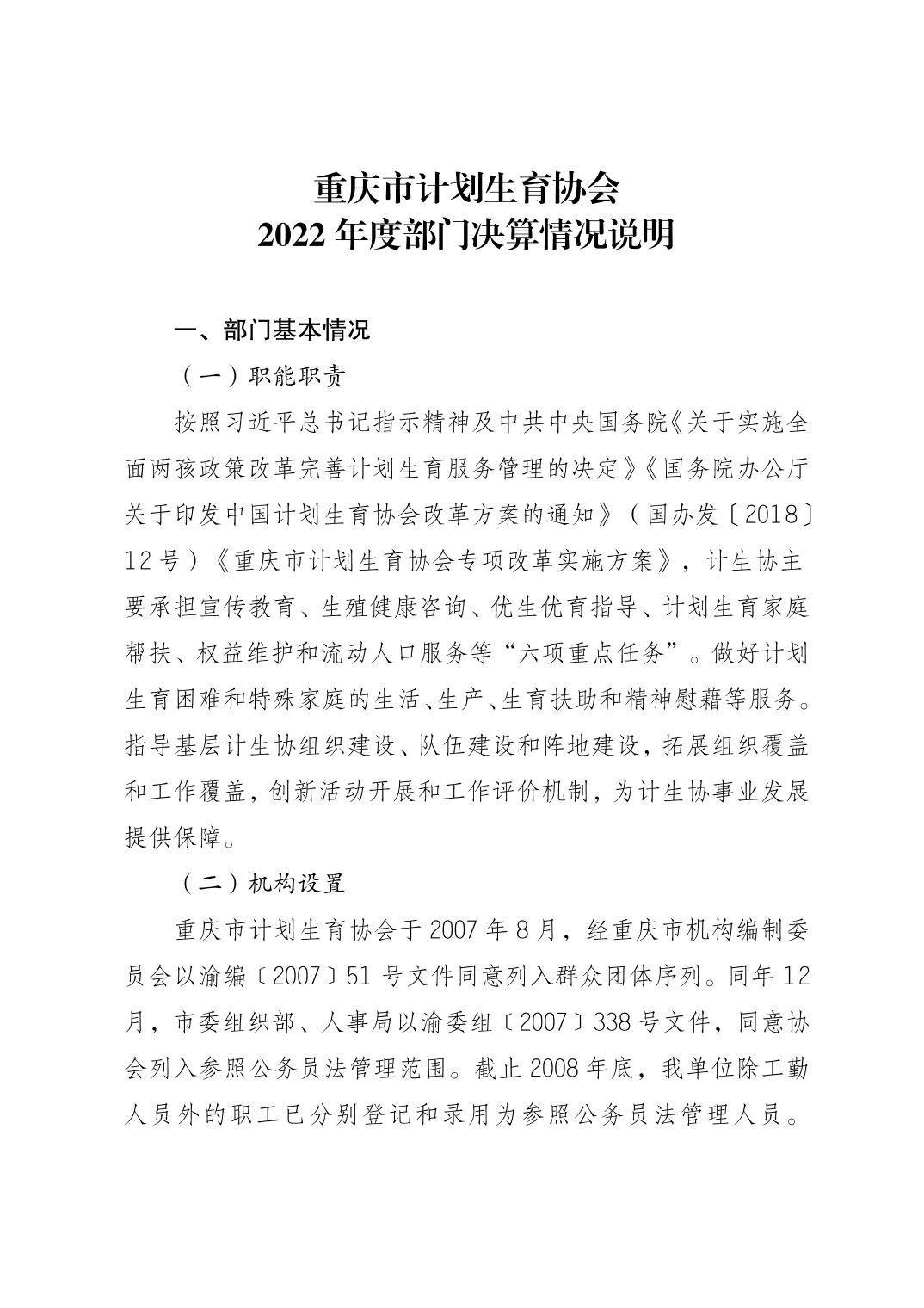 重庆市计划生育协会2022年度部门决算情况说明