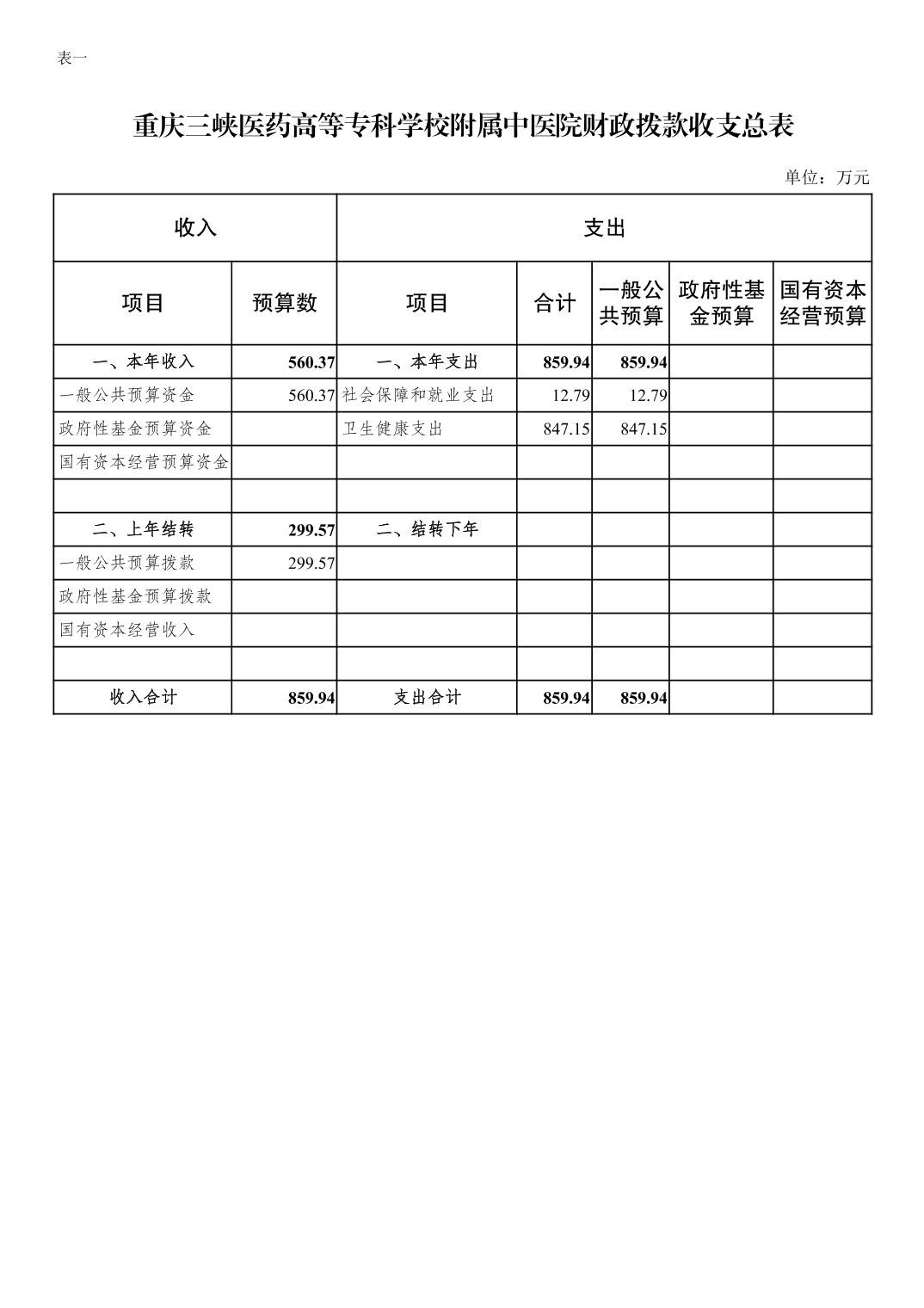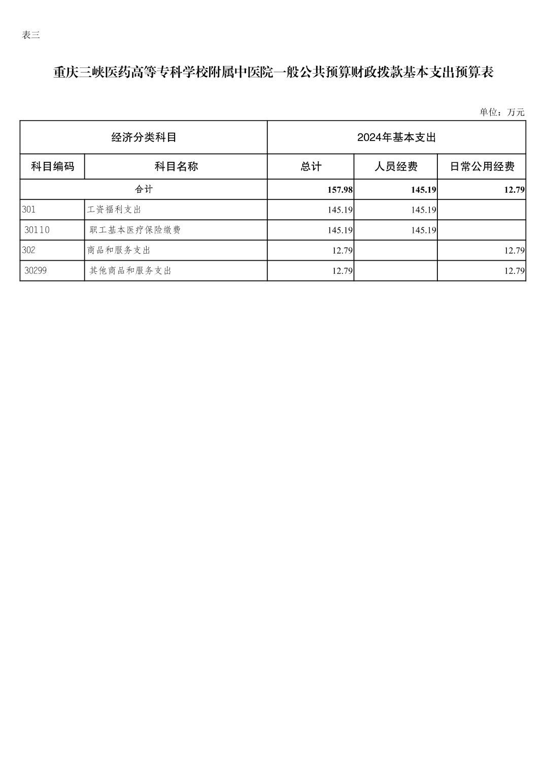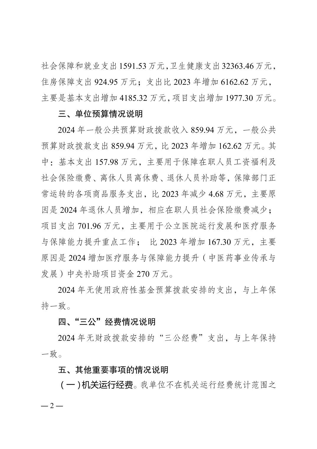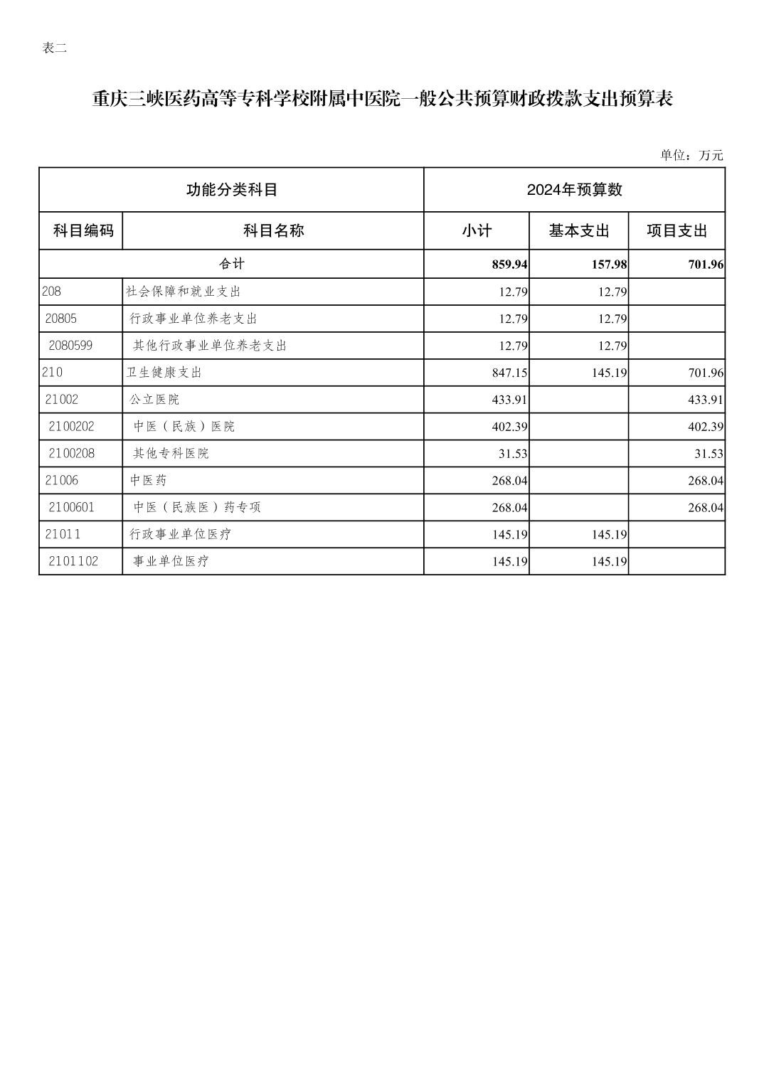 重庆三峡医药高等专科学校附属中医院2024年单位预算情况说明