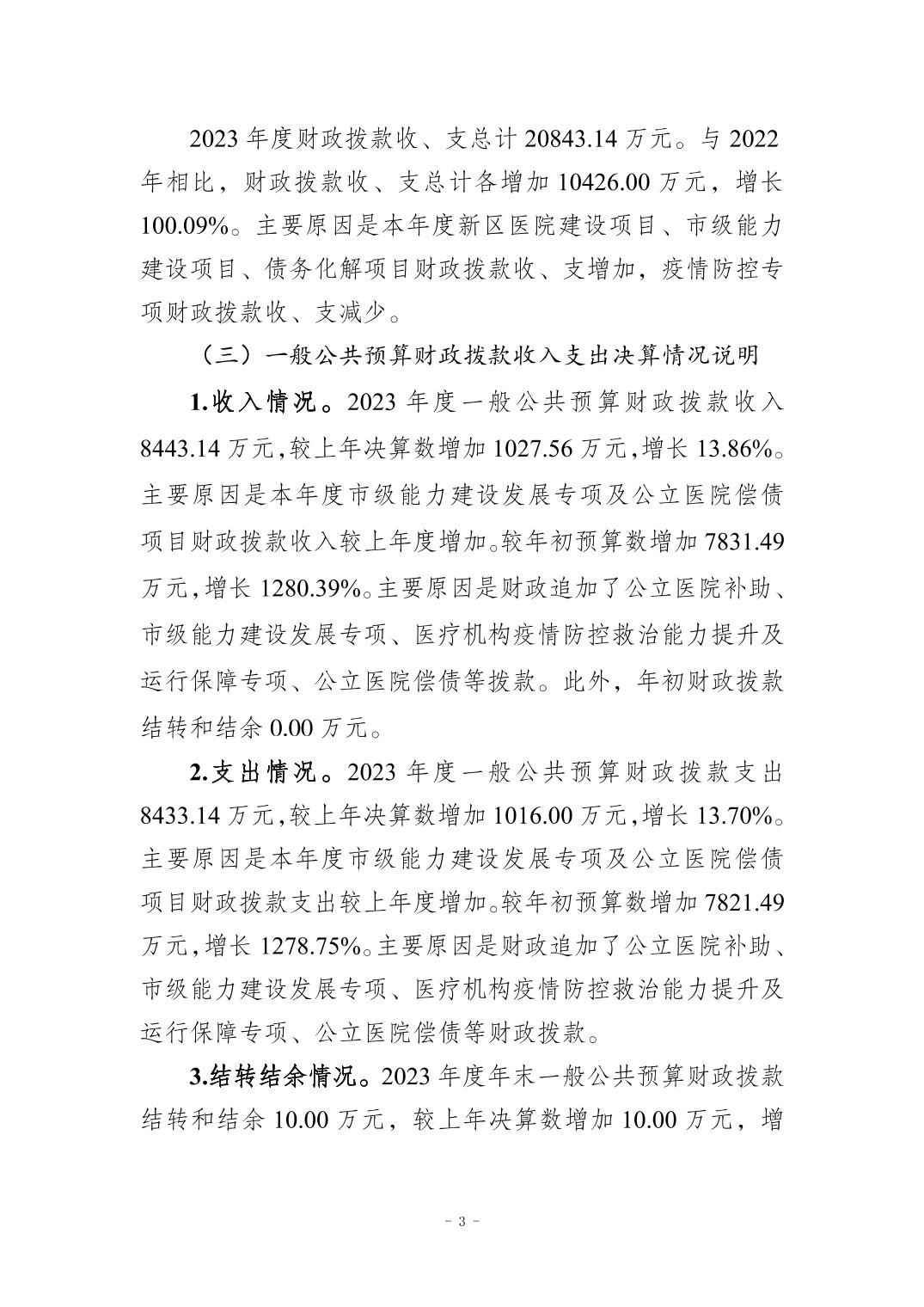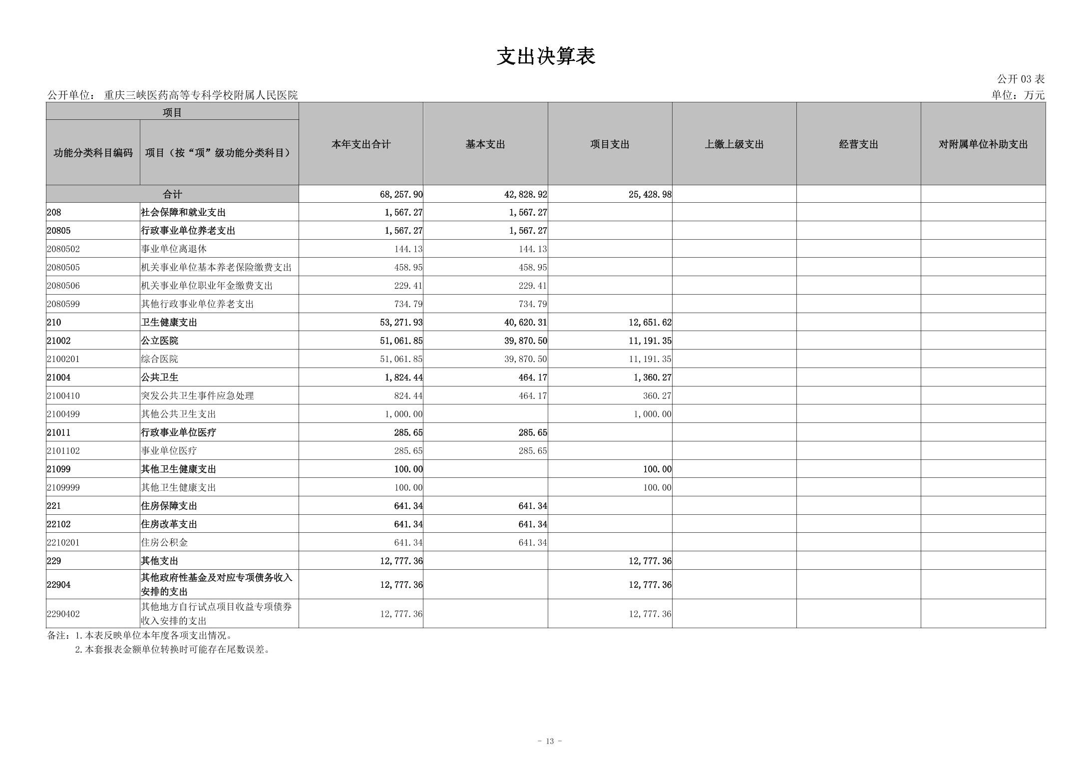 重庆三峡医药高等专科学校附属人民医院2023年度决算公开说明