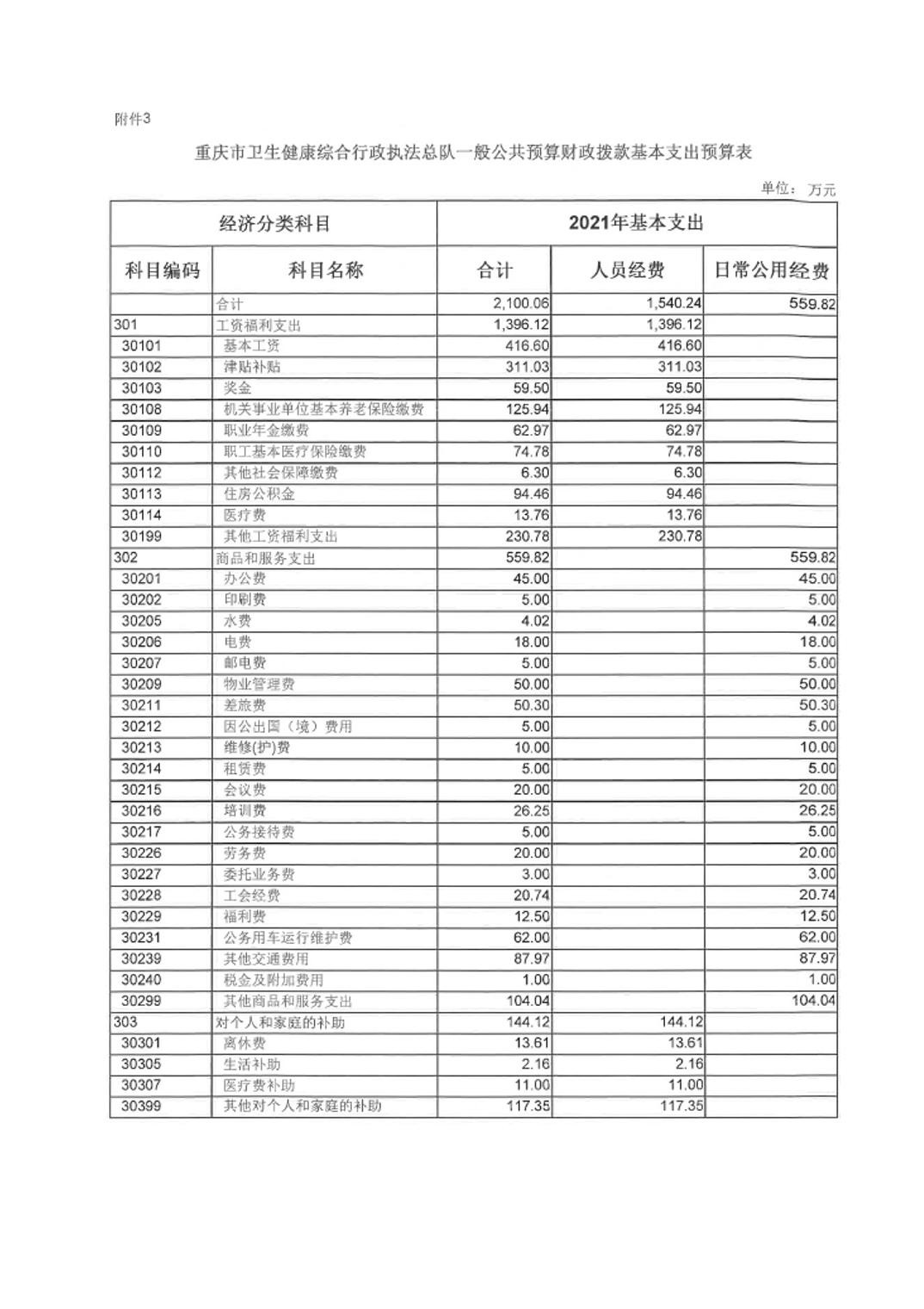 重庆市卫生健康综合行政执法总队2021年单位预算情况说明